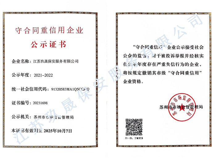 【玖晟保安】連中8標業務拓展再創佳績近日,江蘇玖...